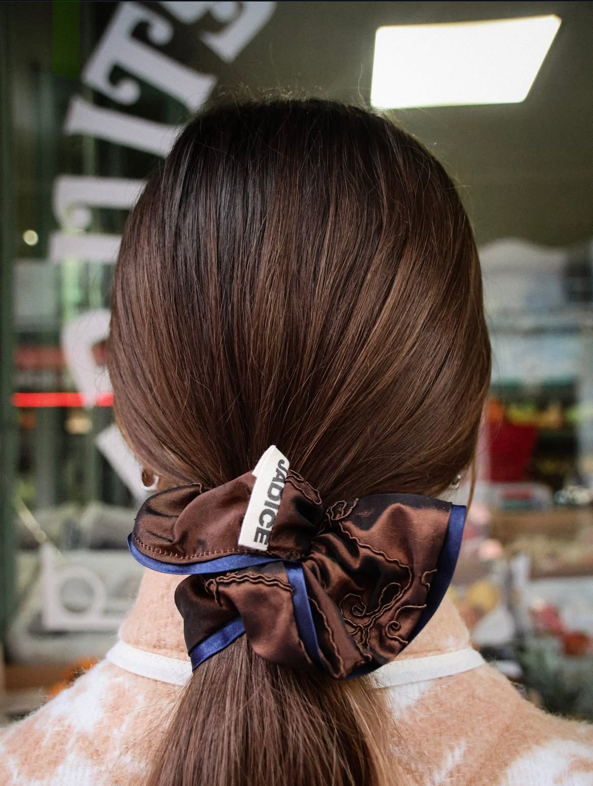 Ce chouchou a été réalisé afin de valoriser au mieux les chutes de tissus. Chaque chouchou est composé d'un tissu, un biais et une dentelle qui le rendent unique et iconique.