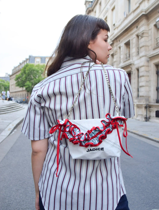 Découvrez la collection de sacs JADICE, conçue pour sublimer chaque tenue tout en respectant la planète. Nos sacs sont réalisés à partir de jeans upcyclés et soigneusement sélectionnés, alliant élégance, durabilité et savoir-faire artisanal français. Chaque pièce est unique, fruit de notre engagement pour une mode éthique et locale grâce au made in France.