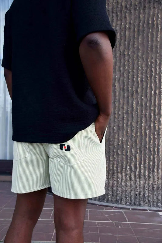 SHORT YUBI UPCYCLÉ - RAYÉ VERT ET BLANC